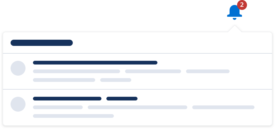 - Do not include multi-step actions in a notification item. Include only one-step actions, e.g. approve or reject, check off task, etc.